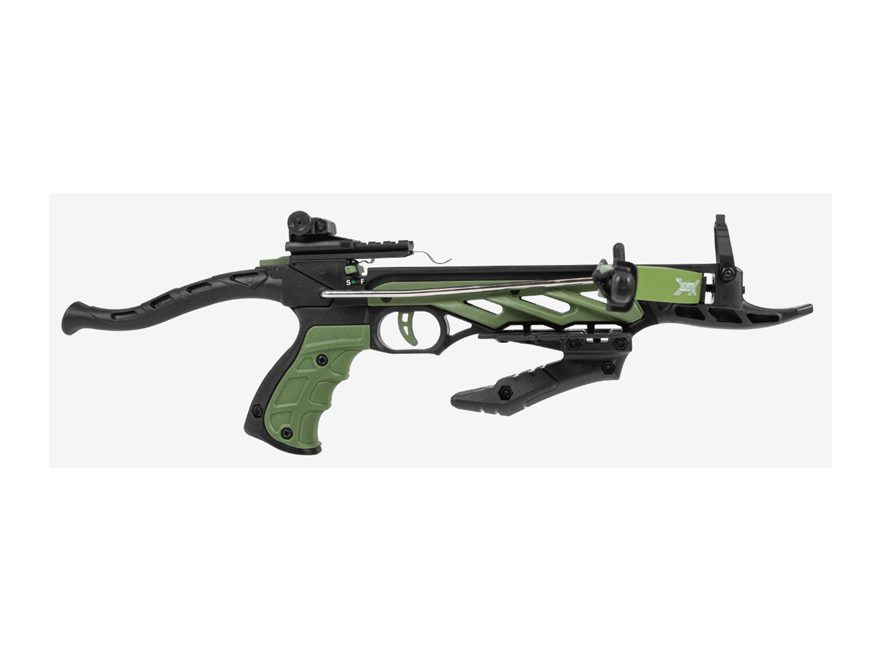 A Balestra 80 Libras Alligator 1 MK-TCS1G da Man Kung é uma arma de arco compacta e potente, ideal para tiro ao alvo e recreação. Com uma força de tração da corda de 80 libras, ela é capaz de disparar setas a uma velocidade de 185 FPS (aproximadamente 56 m/s), oferecendo um desempenho notável para sua categoria. O arco é feito de fibra de vidro, garantindo durabilidade e resistência, e a balestra possui um acabamento em polímero, que contribui para a leveza do equipamento.