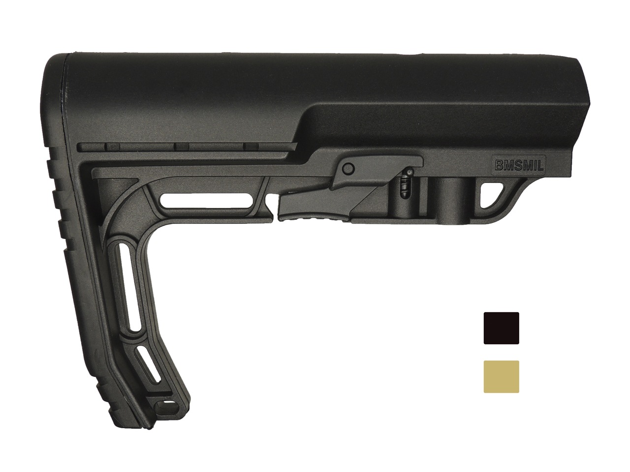 Como seu espaço interno é limitado, esta coronha é indicada para armas com bateria frontal ou com bateria que vá dentro do tube stock.